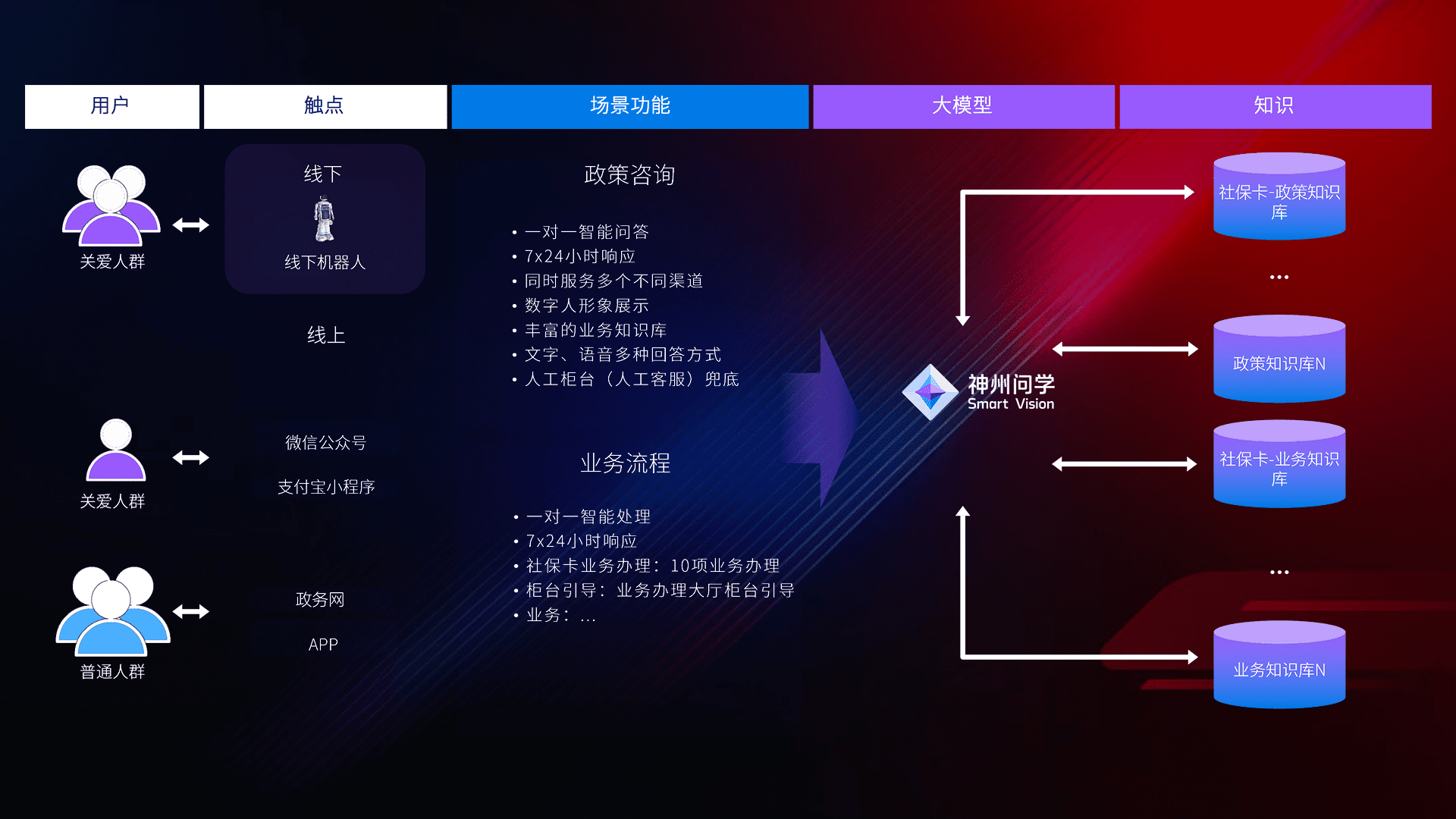 • 线上线下全覆盖:线上提供微信公众号、、、、支付宝小程序、、政务网、、、app多种渠道,,,,与线下机器人形成完整服务体系。。